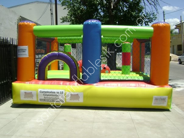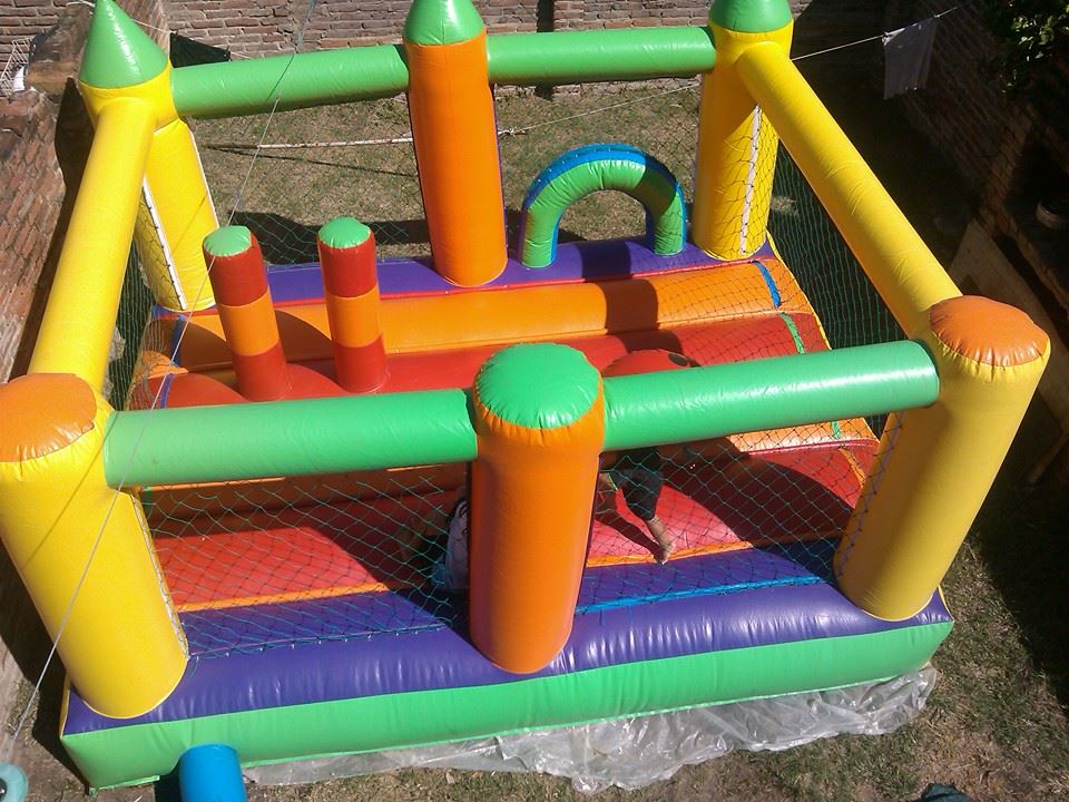 Castillo inflable Clásico de 4×3.5, 6 Columnas con 3 Picos en el frente, 3 Juegos internos, incluye turbinas, 1 año de garantía