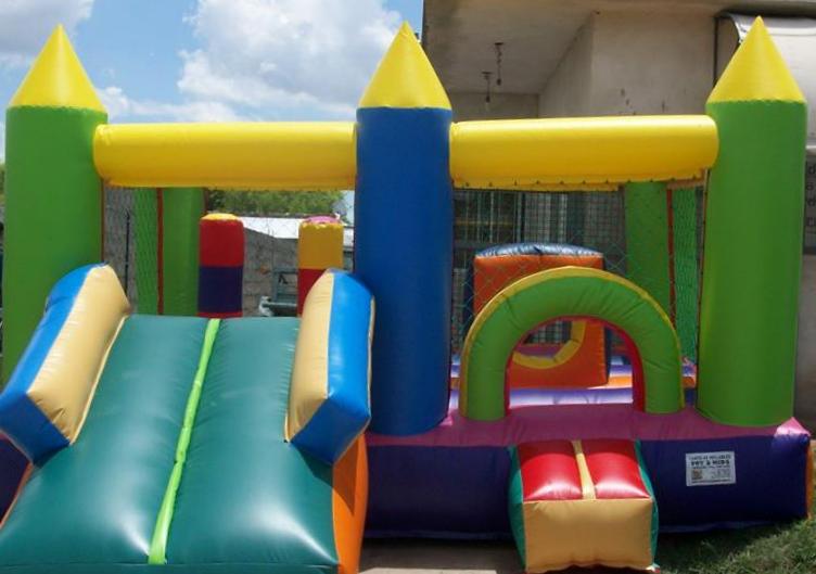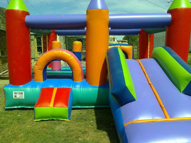 Juego inflable 5×4 con salida tobogán en el frente. Columnas de picos al frente. incluye turbina. 1 año de Garantía