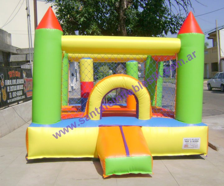 Juego inflable clásico 3×3, con subida en la puerta de entrada y picos en las columnas de frente, incluye turbina. 1 año de garantía